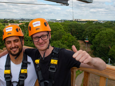 With our most extreme activity being a nerve-wracking step off the top of a 24m high-power fan descender, our activities are perfect for high-flying stags and guests. The adrenaline junkies in your party will love our freefall bag jumps (no harness, no safety net - just you vs the ultimate leap of faith!), while more laid-back lovers of the great outdoors can enjoy the incredible views of Hounslow Heath side-by-side with a friend on the dual zip lines.