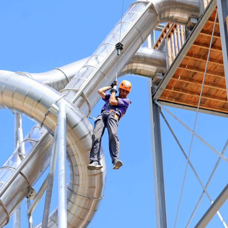 Whizz down one of our two 50 metre long, 24 metre high speed slides! These are definitely not your normal playground slides - both our vertical drop slide and swirly spiral slide are fast, extreme, and thrilling!