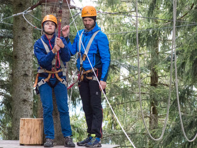 Gravity is essentially what is bringing you down the zipline. When you step off the platform and start your descent, gravity pulls you downwards, converting energy (the energy stored in your position above the ground) into kinetic energy (the energy of motion). This means the steeper the zip line, the more potential energy you have when you first step off resulting in a faster ride.
